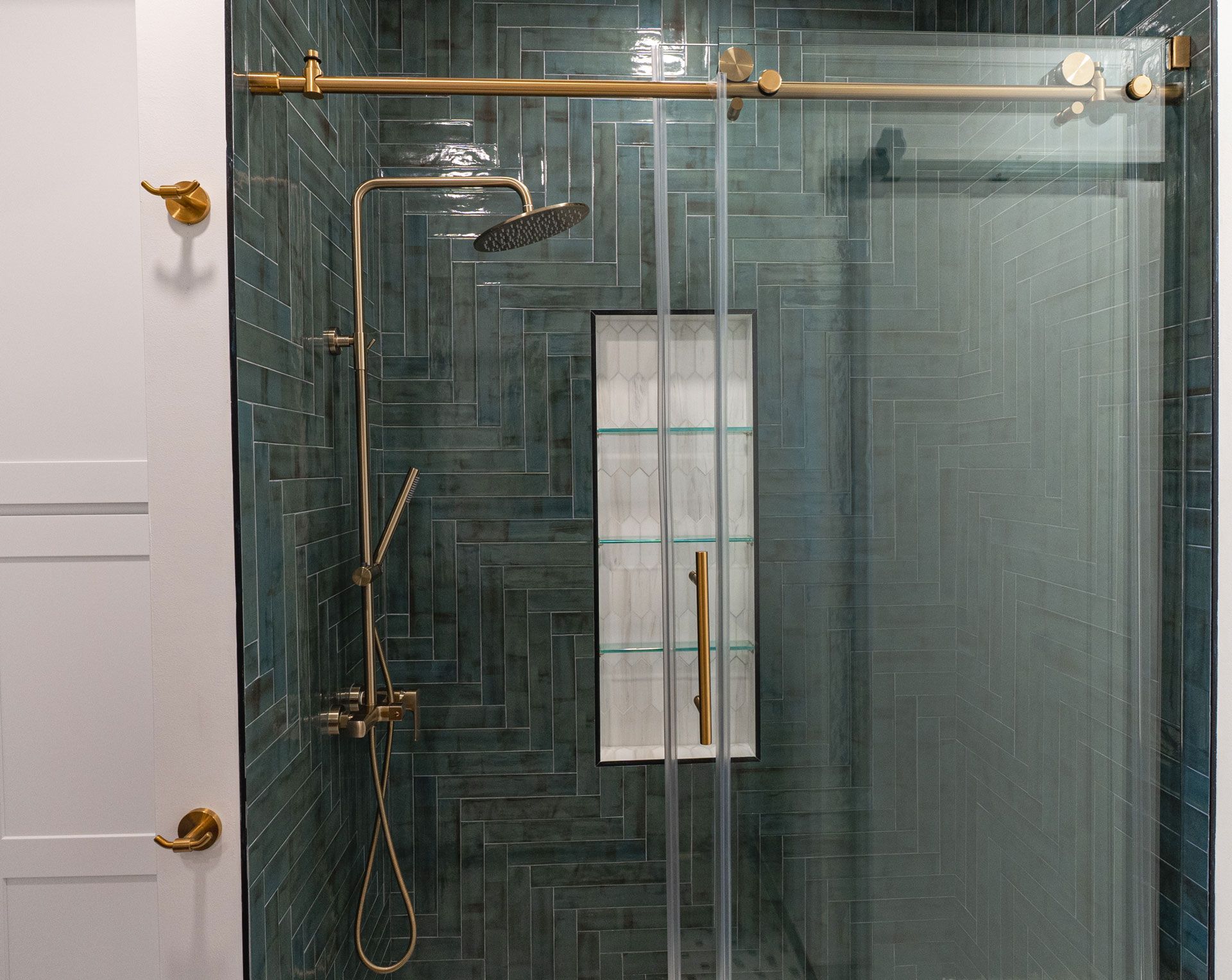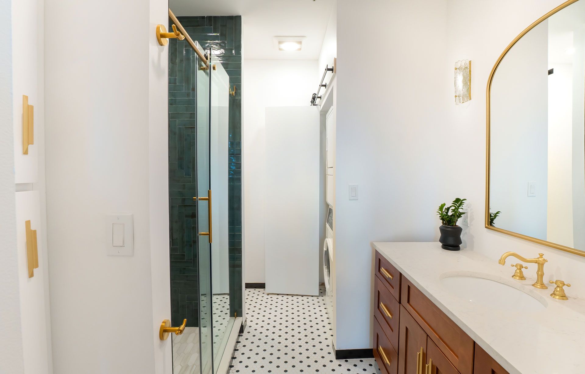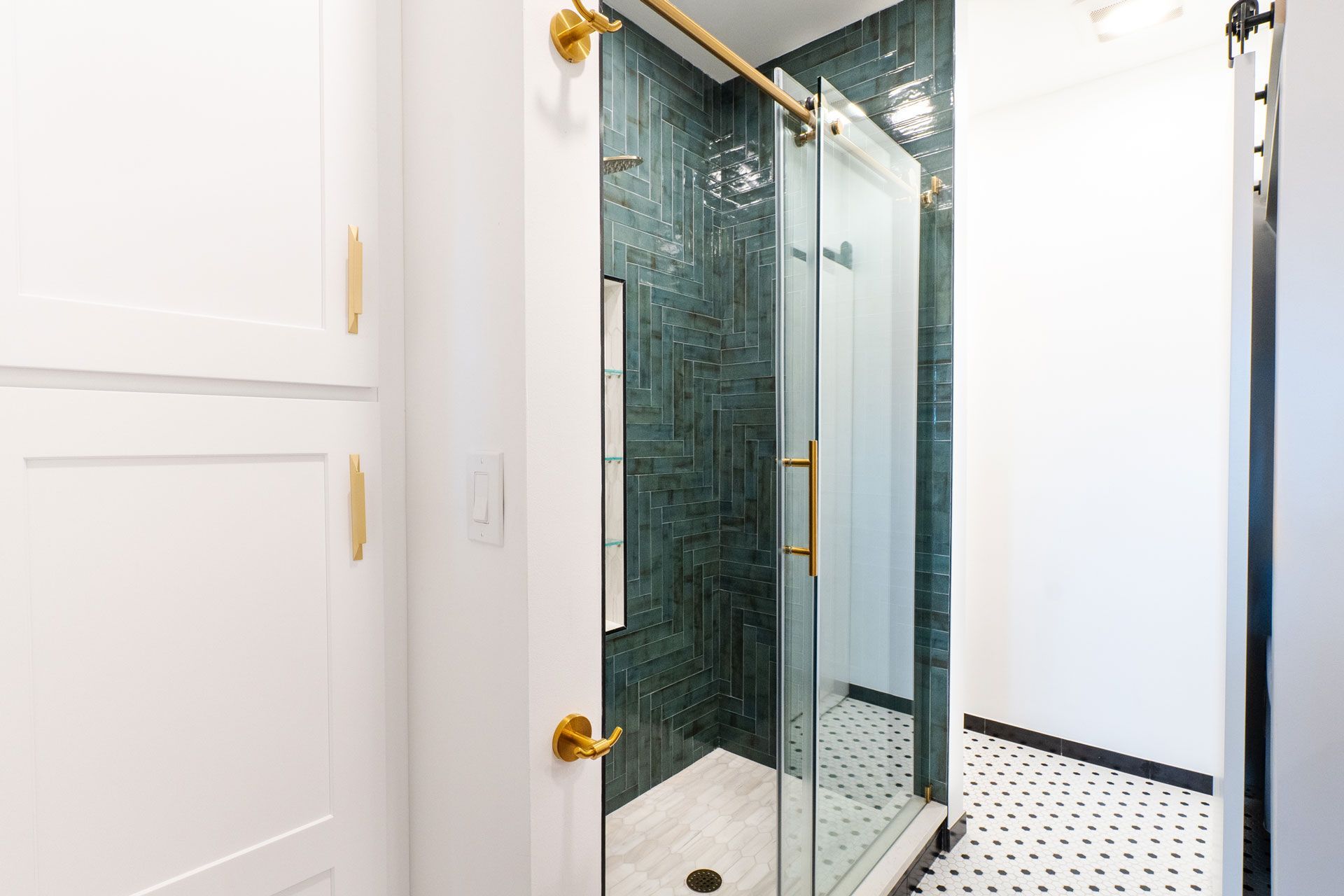 and sophistication with the renovated Antique Chic Emerald Bathroom, where vintage charm meets modern luxury. This exquisite space is a testament to the seamless fusion of old-world allure and contemporary functionality. The dominant color scheme revolves around rich emerald greens, creating a sense of opulence and tranquility. The wall’s muted tones complement the dazzling emerald tiles that line the bathroom walls, creating a harmonious balance between bold and subtle elements.