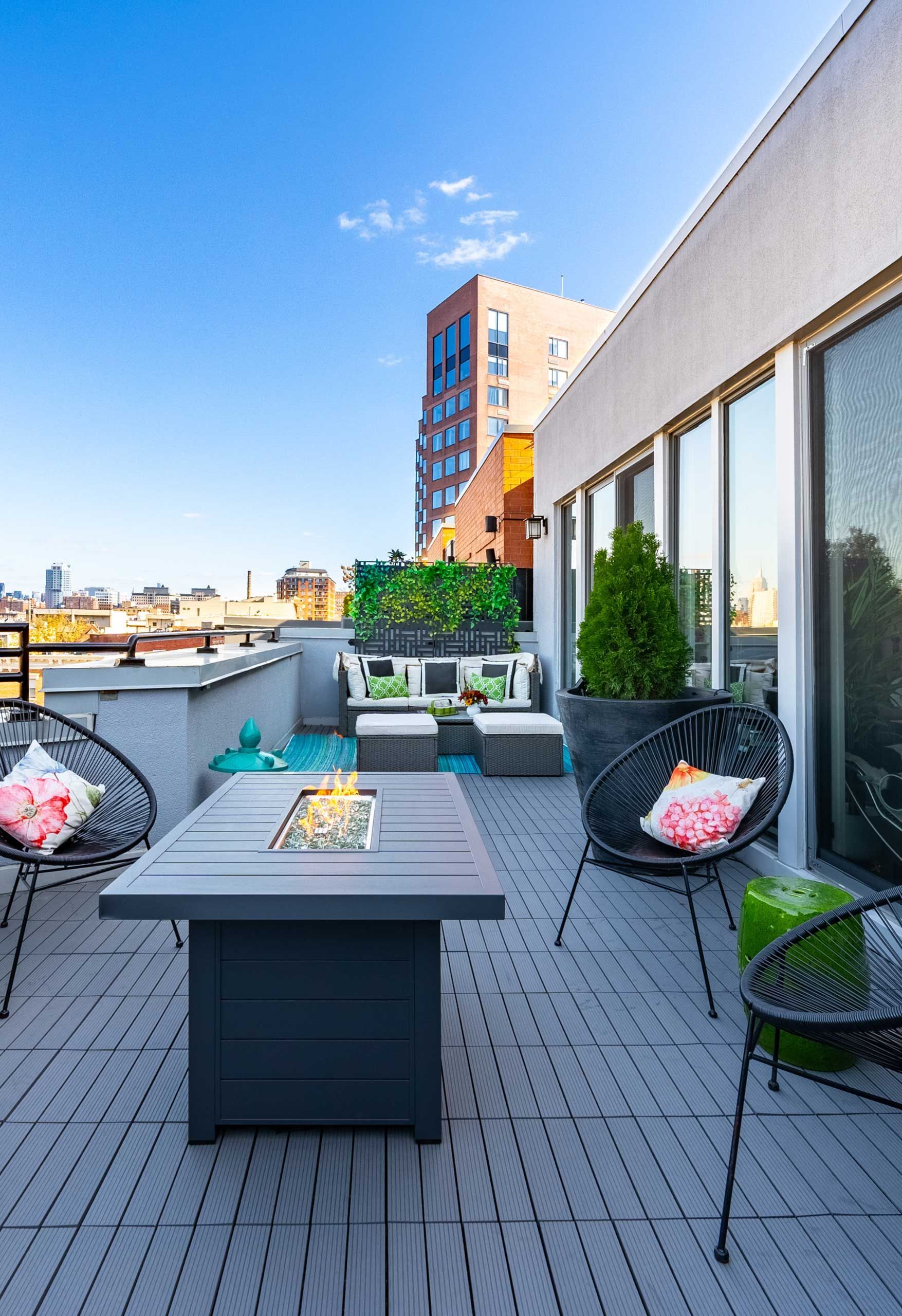 as you indulge in the epitome of urban luxury with a rooftop makeover that unveils breathtaking views of the iconic Hoboken & New York City skylines. This avant-garde transformation transcends the ordinary, elevating your outdoor living space into a haven of calm chic.