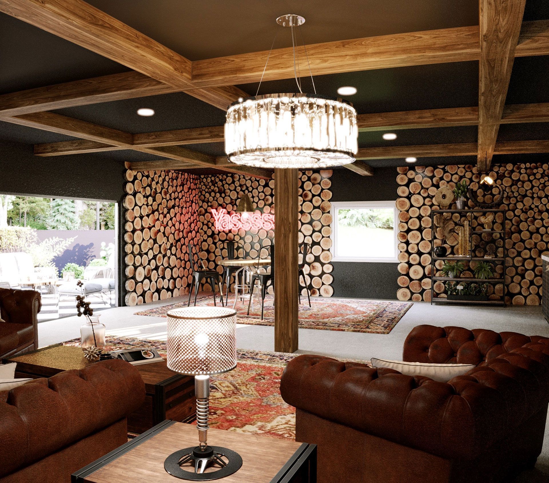 The garage, no longer just a shelter for vehicles, underwent a spectacular conversion, now housing a year-round recreation room that became the heart of entertainment and relaxation. This versatile space boasted a well-appointed bar, inviting gatherings and celebrations in every season. The introduction of 14 feet of folding glass doors blurred the lines between indoor and outdoor living, inviting the surrounding nature into the heart of the home.