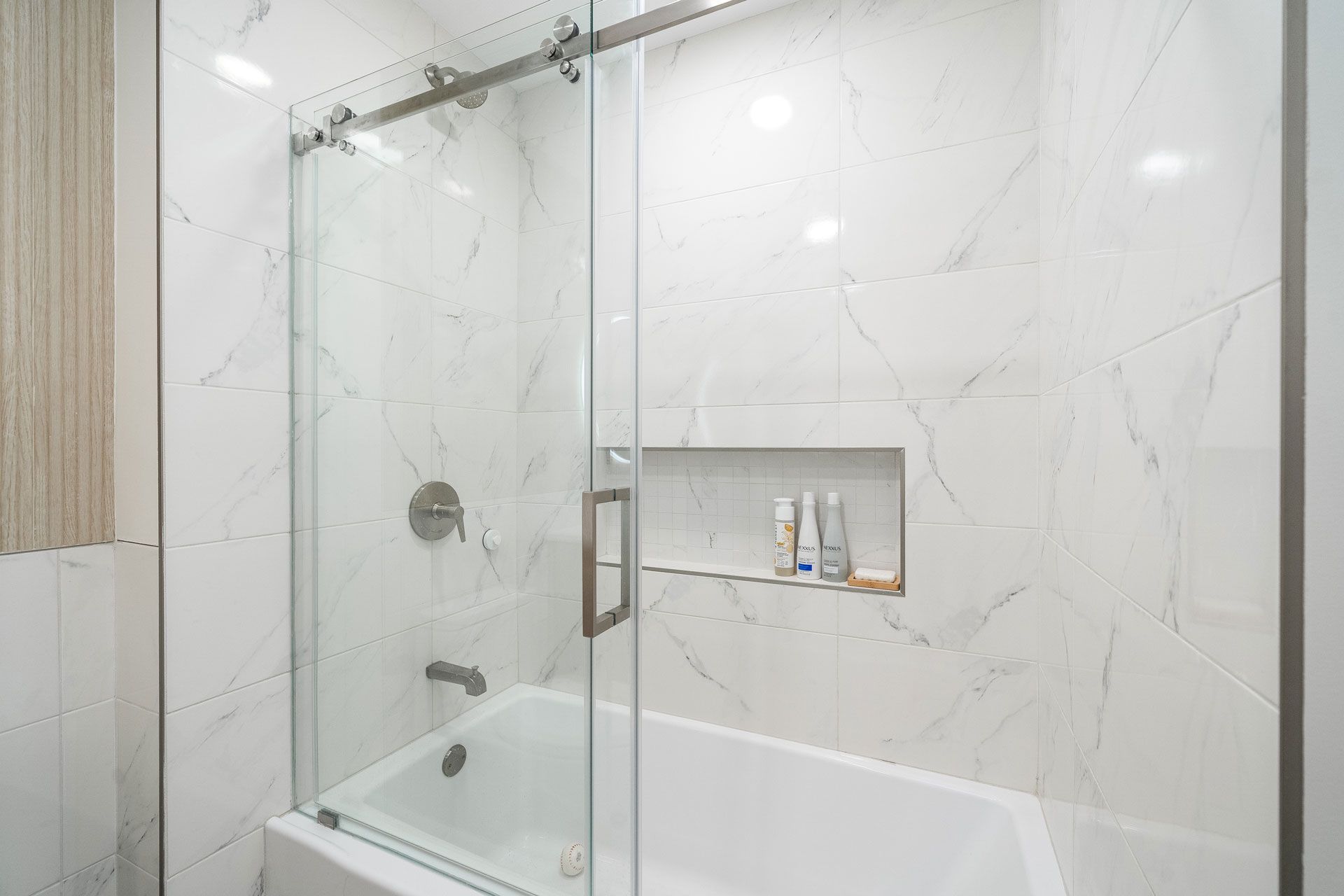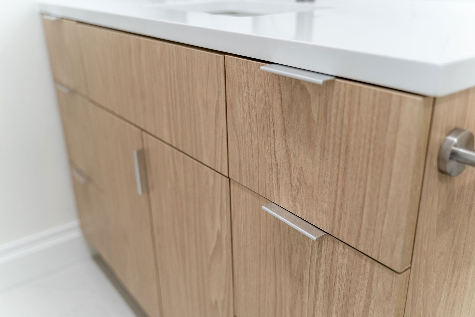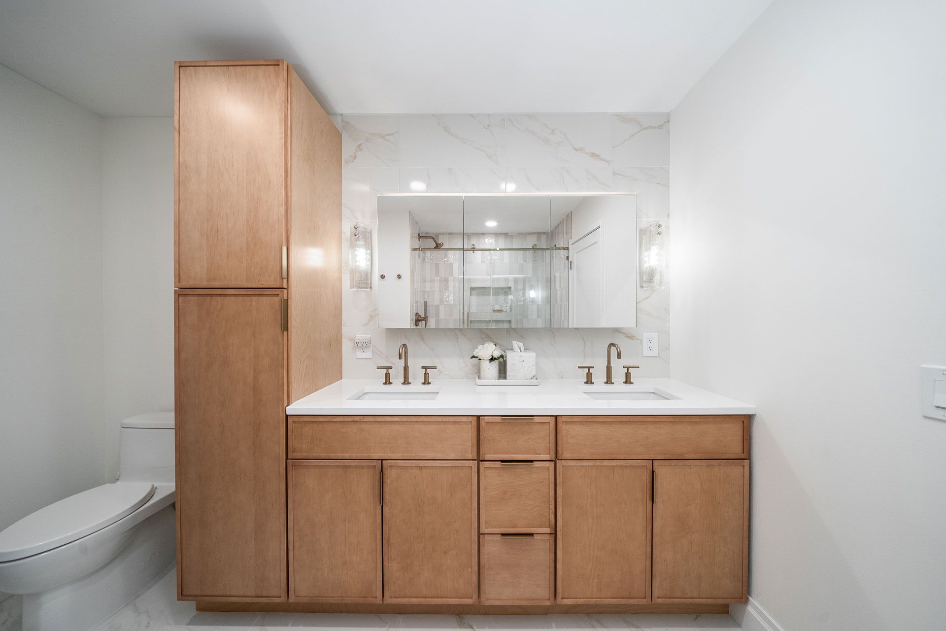 The design is rooted in a soft, tonal palette of warm whites and natural woods, creating an atmosphere that feels both calming and sophisticated. Clean architectural lines are paired with organic textures, allowing each material to stand on its own without unnecessary ornamentation. The result is a space that feels effortless—minimal, yet deeply intentional.