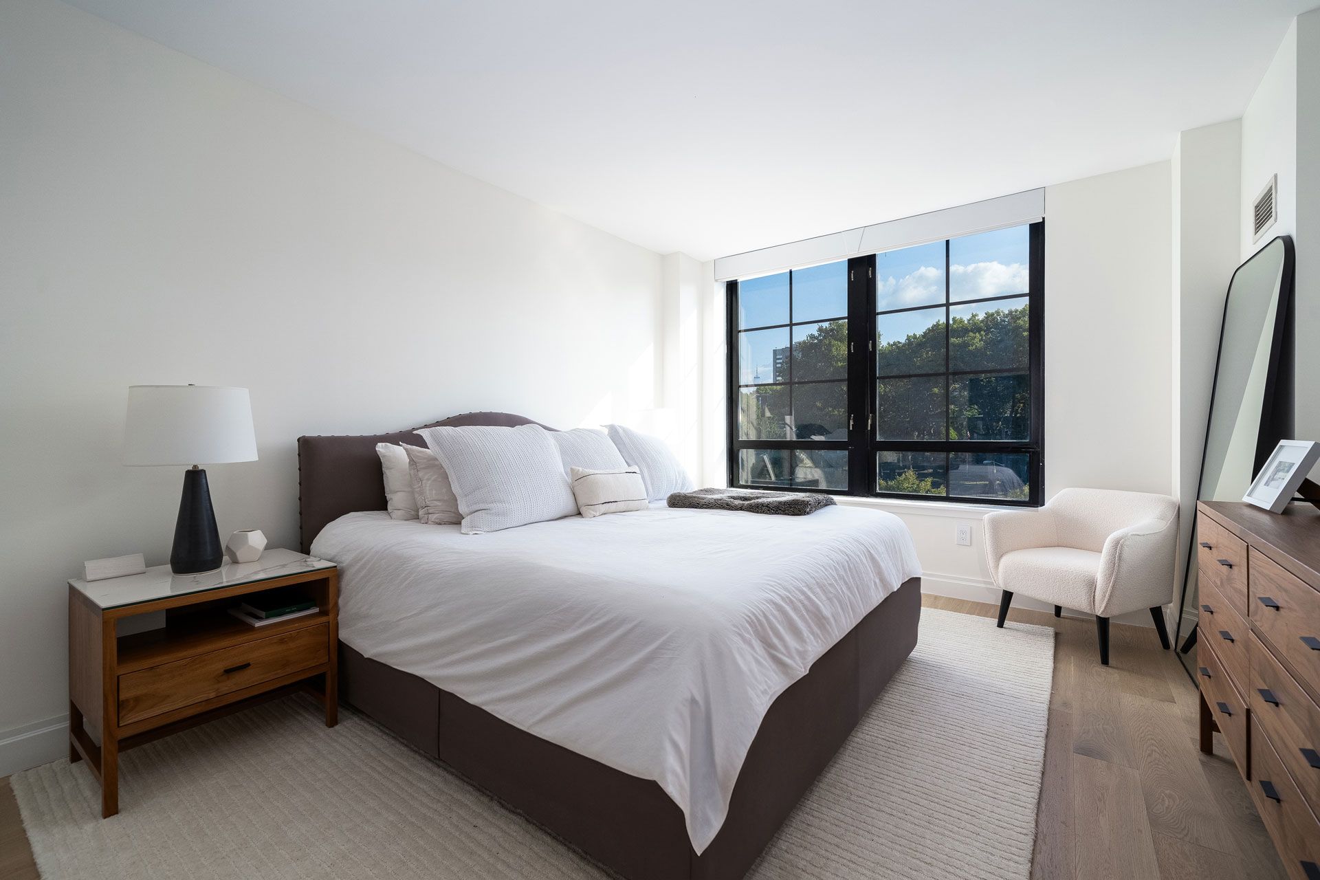 Perched high above the city within one of Hoboken’s premier luxury condominium buildings, The Hoboken Minimalist is a refined study in restraint, warmth, and elevated simplicity. This full-scale renovation transforms the residence into a serene, light-filled home where natural materials and modern design exist in perfect balance.